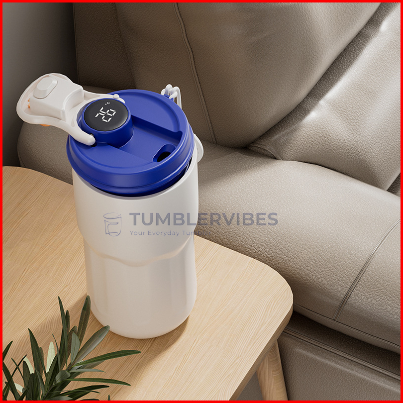 Tumblervibes Smart Thermos Bottle Water With Digital Led Temperature And Strap 14oz