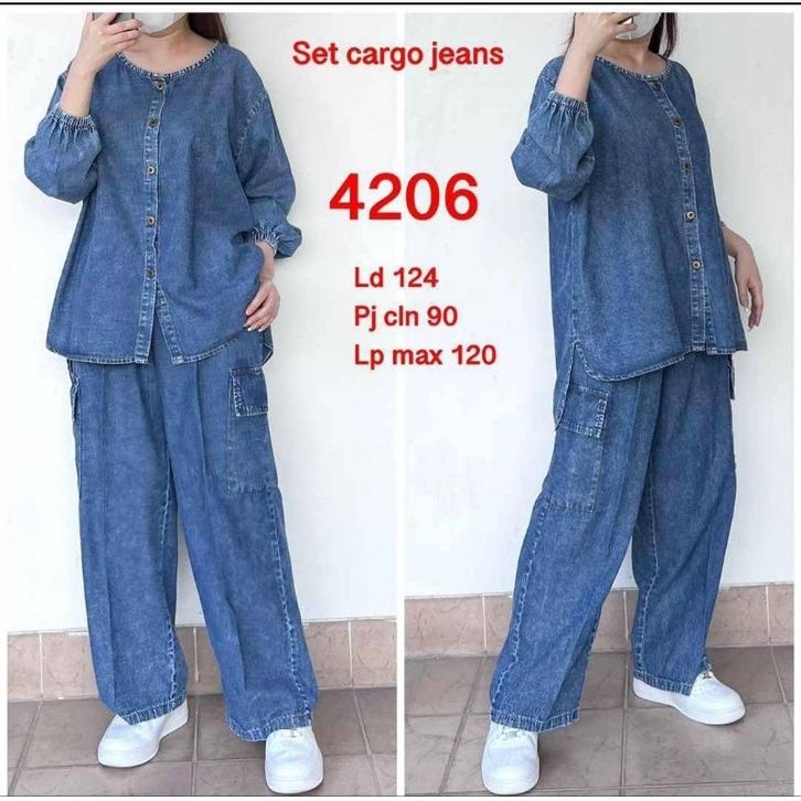 Setelan Cargo Kekinian Wanita One Set Wanita Kekinian Setelan Jeans Washed Kasual Setelan Wanita Formal Non Formal