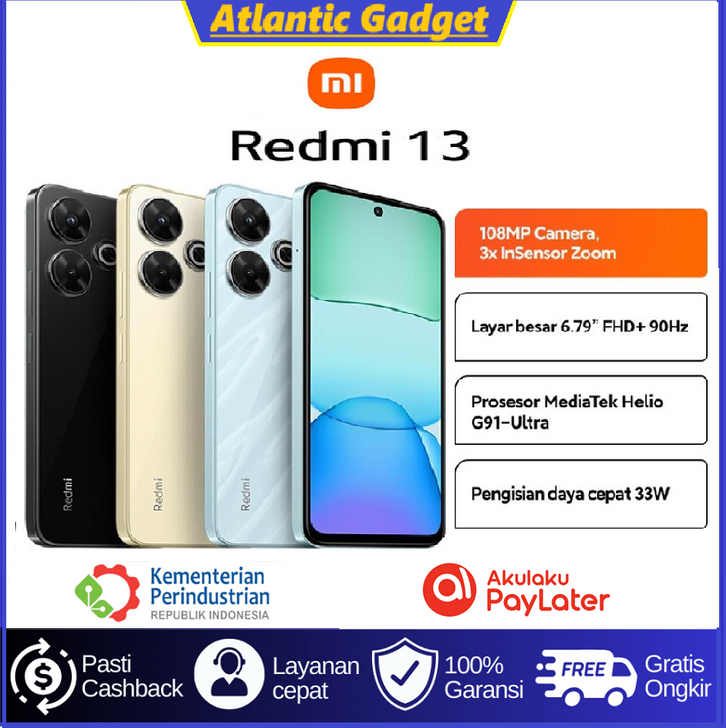 Xiaomi Redmi 13 8/256GB | MediaTek Helio G91 Ultra | Kamera 108MP Super Jernih | Baterai 5030mAh 33W Fast Charging | NFC