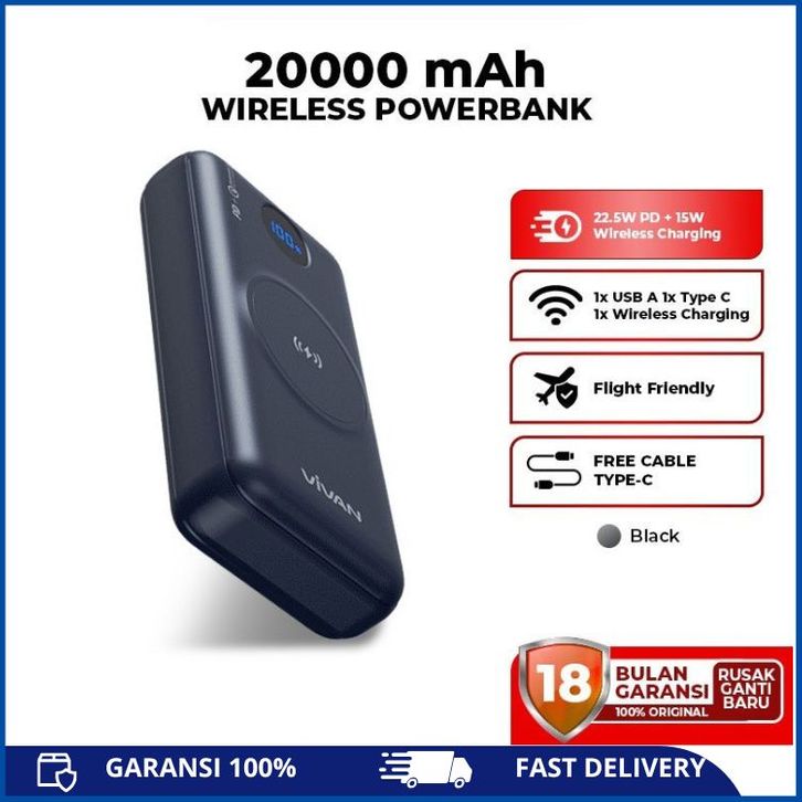 [Mall] VIVAN Wireless Powerbank 20000 mAh VPB-W20 3 Output 22,5W Fast Charging Garansi 18 Bulan