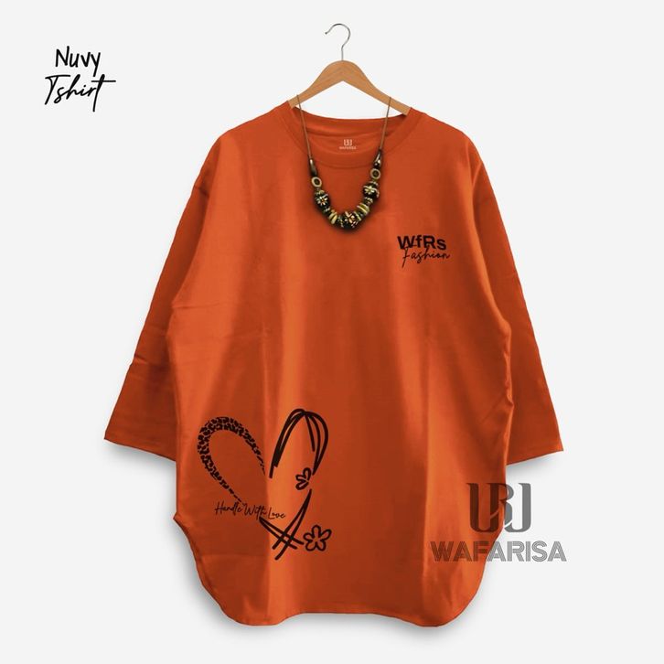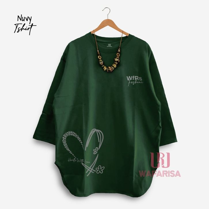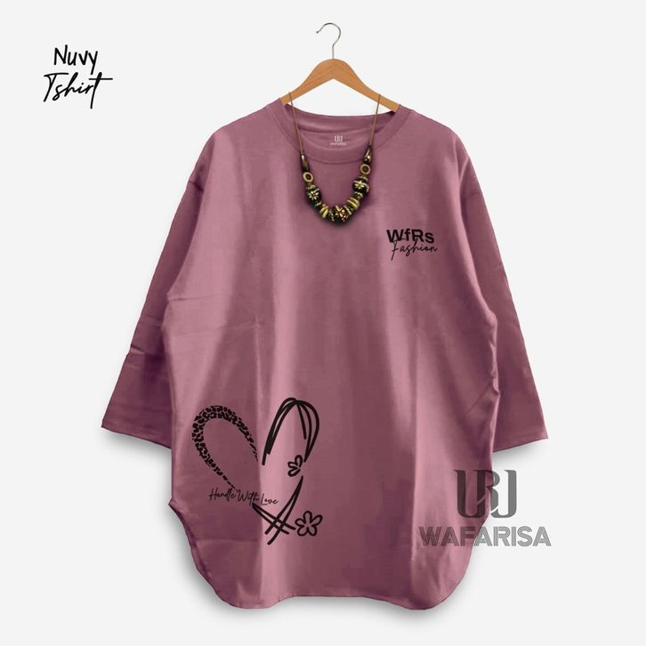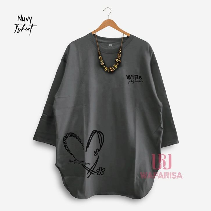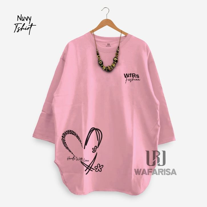 Kaos model bawah oval bahan cotton combed tidak nerawang lengan 3/4 TT Love Wafarisa Halus