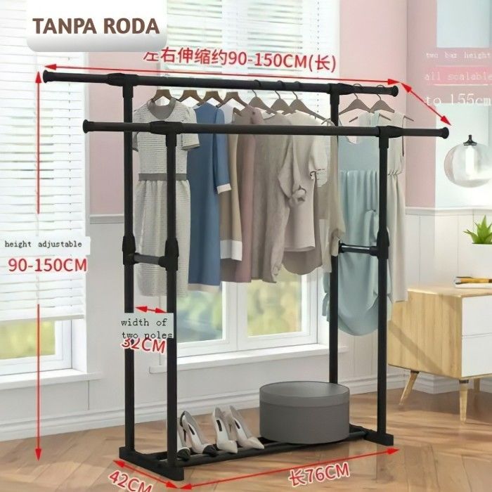 FREE ONGKIR Stand hanger double sisi rak serbaguna dgn 4 roda
