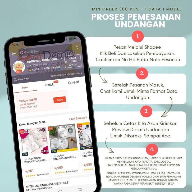 300 PCS Antdemic Cetak Kilat Undangan Pernikahan Walimatul Khitanan Tasyakuran Ngunduh Mantu Aesthetic Orang Tua Express