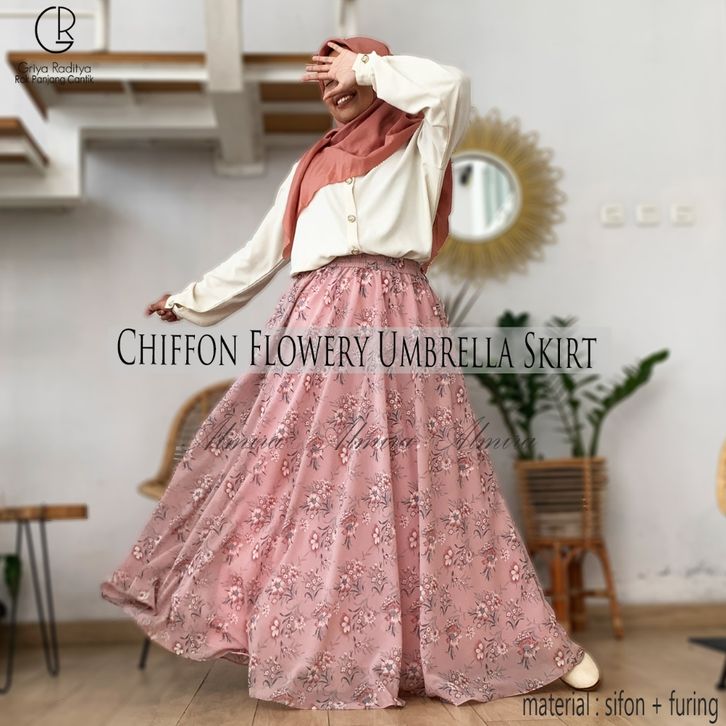 Rok Panjang Wanita Payung Muslimah Sifon Flowery Chiffon Umbrella Skirt Bunga9riyaraditya Almira