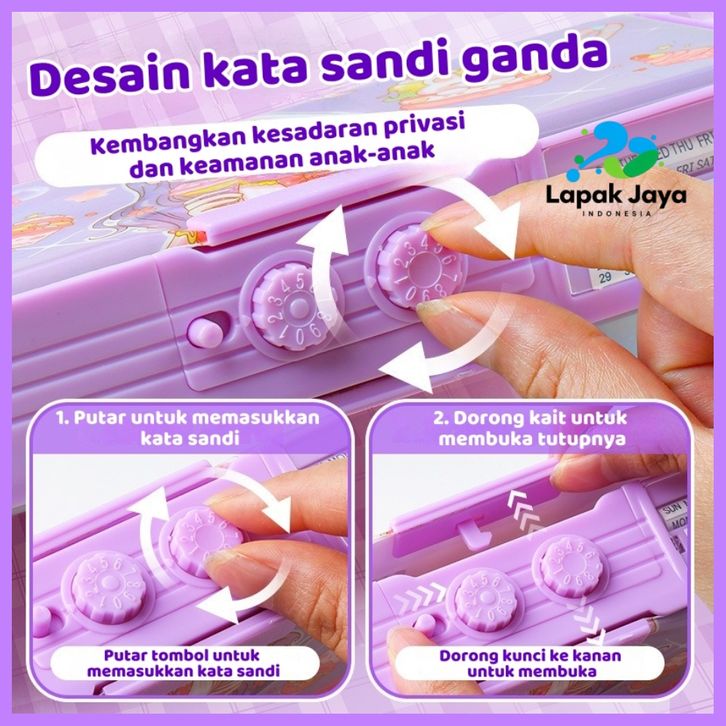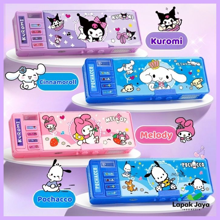 Kotak Pensil Bahan Tahan Air Kuromi Tempat Pensil Password Multifungsi Lapis Ganda Berkapasitas Besar Lucu