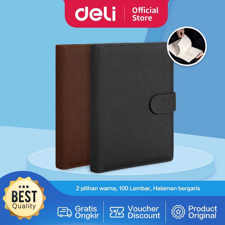 DELI LOOSE-LEAF NOTEBOOK BUKU CATATAN 25K 210X145MM 100 LEMBAR WARNA COKLAT HITAM 3151