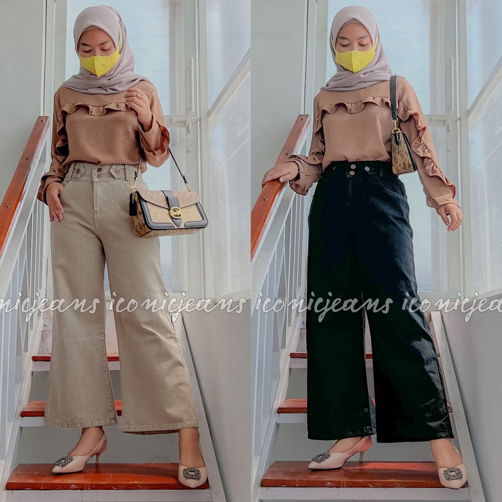 (Gratis Ongkir) Prita Jeans Kulot Dua Kancing pinggang Karet Korean Kulot