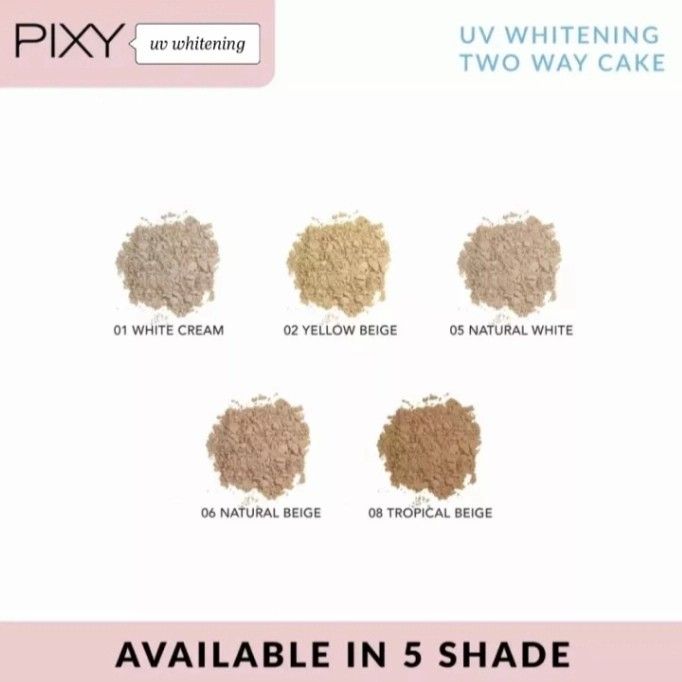 01 White cream, 02 Yellow Beige, 04 Ivory, 05 Natural Whit, 06 Natural Beig, 08Tropical Beig