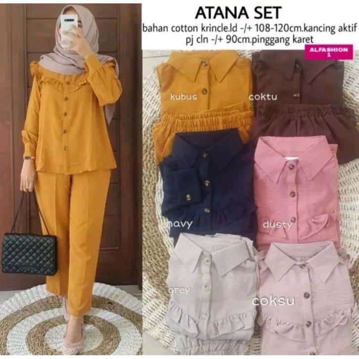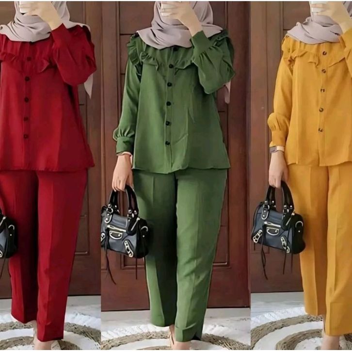 One Set Outfit Wanita Setelan Wanita Kringkel Lengan Panjang Satu Set Wanita Kekinian Setelan Wanita Kasual
