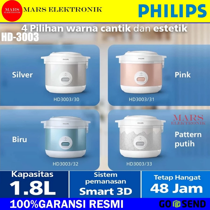 RICE COOKER PHILIPS HD3003 - 1,8 LITER - GARANSI RESMI - 1000SERIES - HD 3003 - READY - PENANAK NASI PHILIPS
