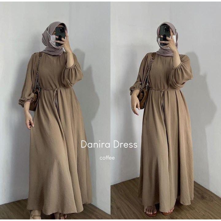 Dress Gamis Berkualitas Wanita Crinkle Airflow Motif Polos All Size LD 110 Atasan Muslimah Lebaran Silaturahmi Kondangan