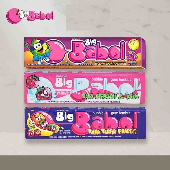 Permen Karet / Chewy Gum Candy Chupa Chups Big Babol 20 Gr Rasa Tuti Fruity, Strawberry, Asteroids, Play Tennis