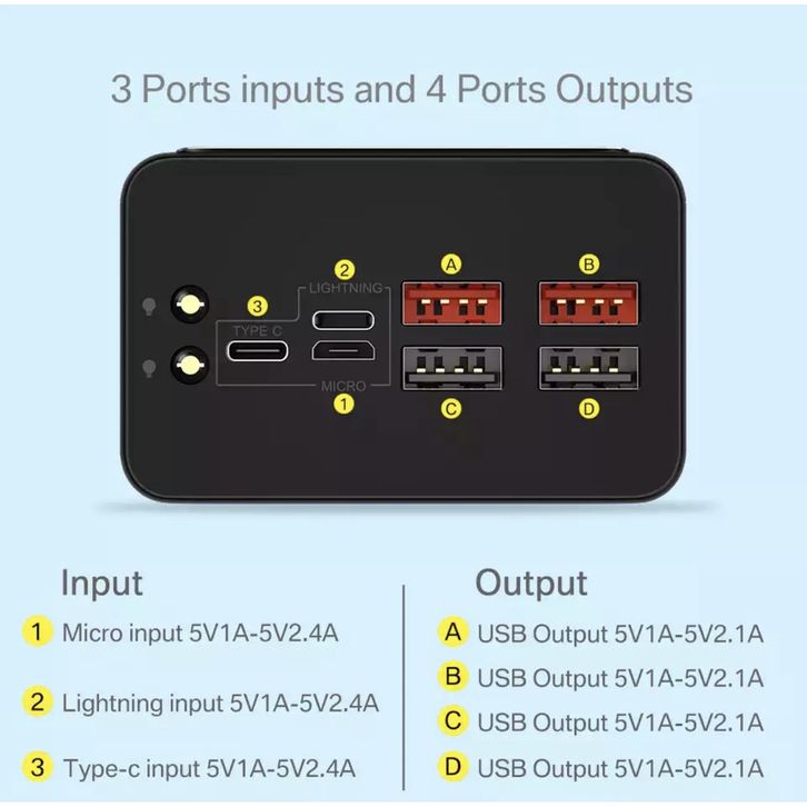 PowerBank 4 USB 60000 mAh Fast Charging External Battery Powerbank LED Digital Display Portable