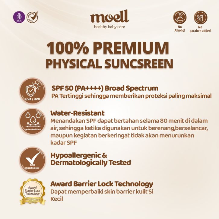 Moell Sunscreen Anak & Bayi SPF 50+ PA++++ – Physical Sunscreen 30gr | Zinc Oxide, Broad Spectrum, Extra Water Resistant