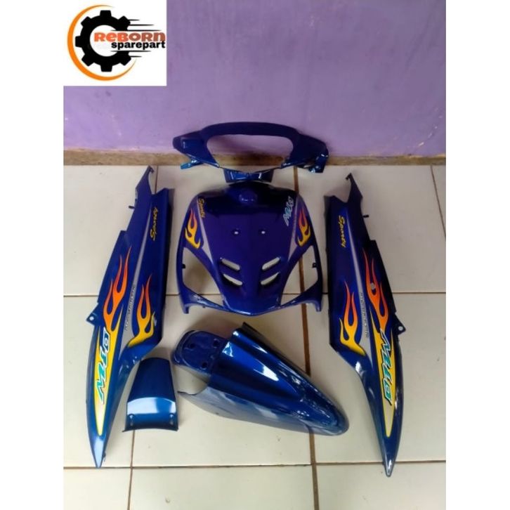 BAGUS COVER FULL BODY HALUS YAMAHA MIO SPORTY BIRU PLUS STRIPING API