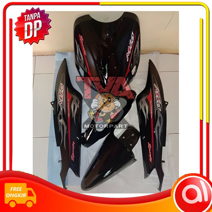 BAGUS PAKET BODY FULLSET HALUS YAMAHA MIO SPORTY OLD WARNA HITAM PLUS STRIPING MIO OLD SPORTY