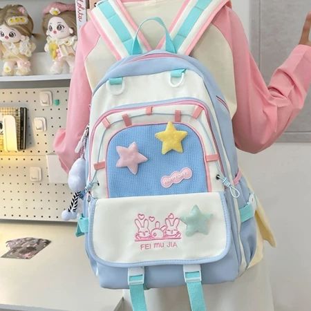 Tas Bahu Macaron Jepang Korea Import Fashion Tas Sekolah Lucu Siswa Kuliah Tas Ransel Laptop Berkapasitas Besar Wanita