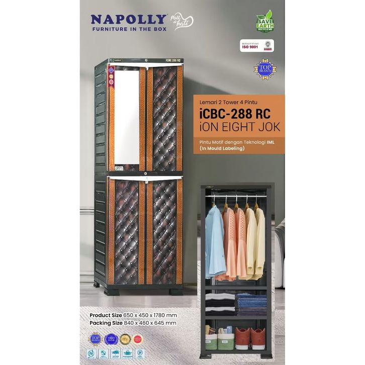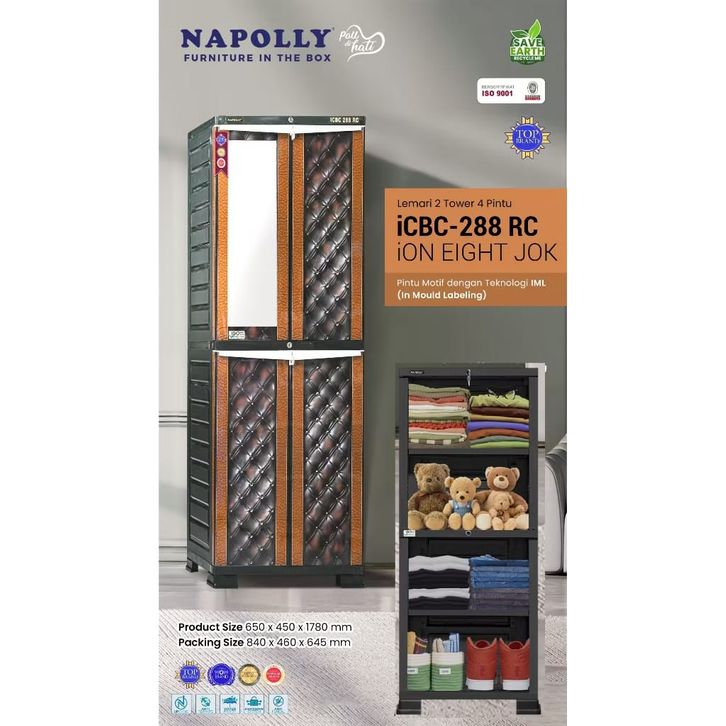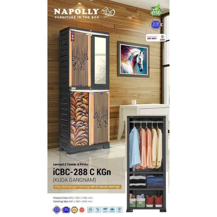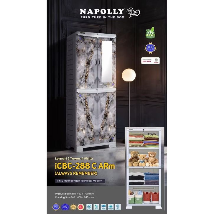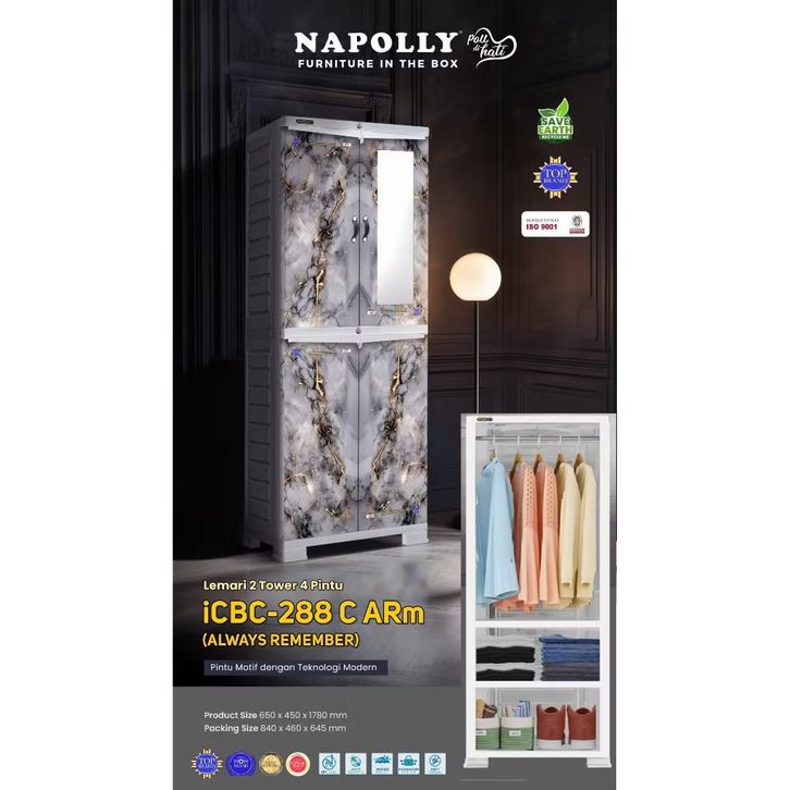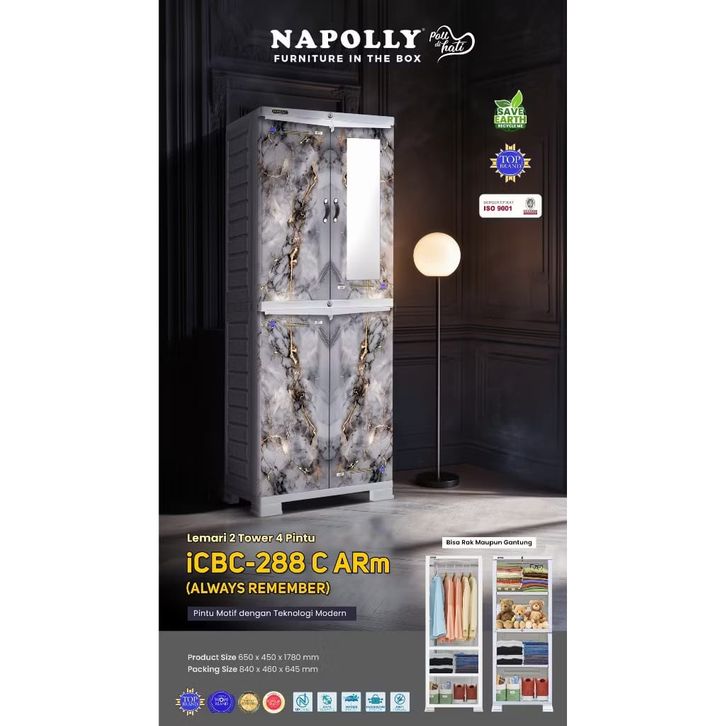 NAPOLLY Lemari Plastik Serbaguna CERMIN KACA FULL KUNCI Tempat Penyimpanan Pakaian Baju - ICBC 288
