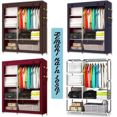 Lemari Kain Portable 2 Sisi + Gantungan Anti Debu Serbaguna lemari minimalis lemari anak kos