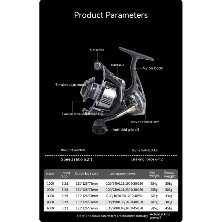REEL PANCING POWER HANDLE ONEWAY SW SEAKINGS VANGUARD 4 + 1 BB MAX DRAG 21KG 1000 2000 3000 4000 6000