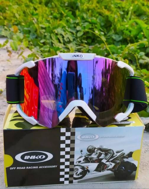 Kacamata Otomotif kaca mata cross / goggle inko yellow pelangi rainbow / gogle kross Kaca mata helm Cross Helm Motor Cr