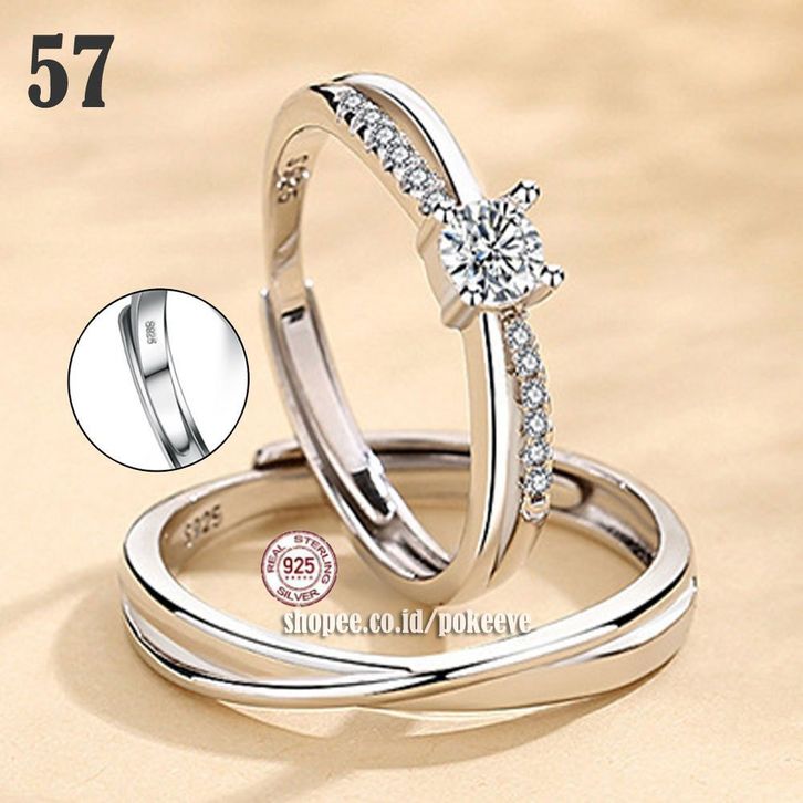 Cin cin Couple Silver Nikah/ Tunangan/ Kawin/ Pasangan Pria/ Wanita Perak S925 Ring