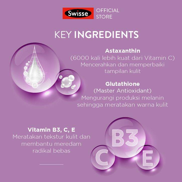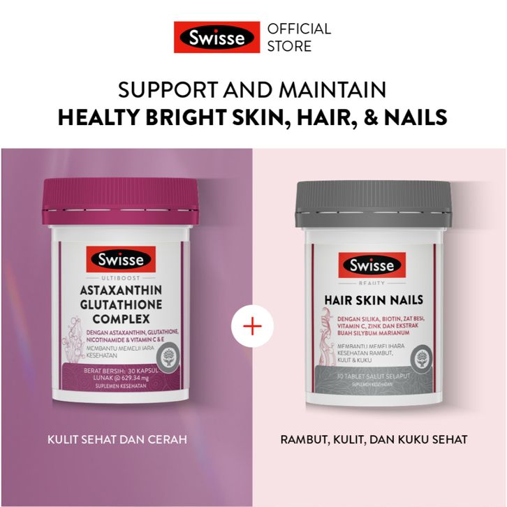Suplemen Kecantikan Swisse Ultiboost Astaxanthin Glutathione Complex Multivitamin Mencerahkan dan Meratakan Warna Kulit