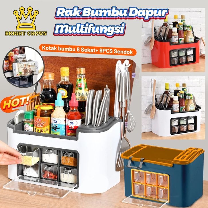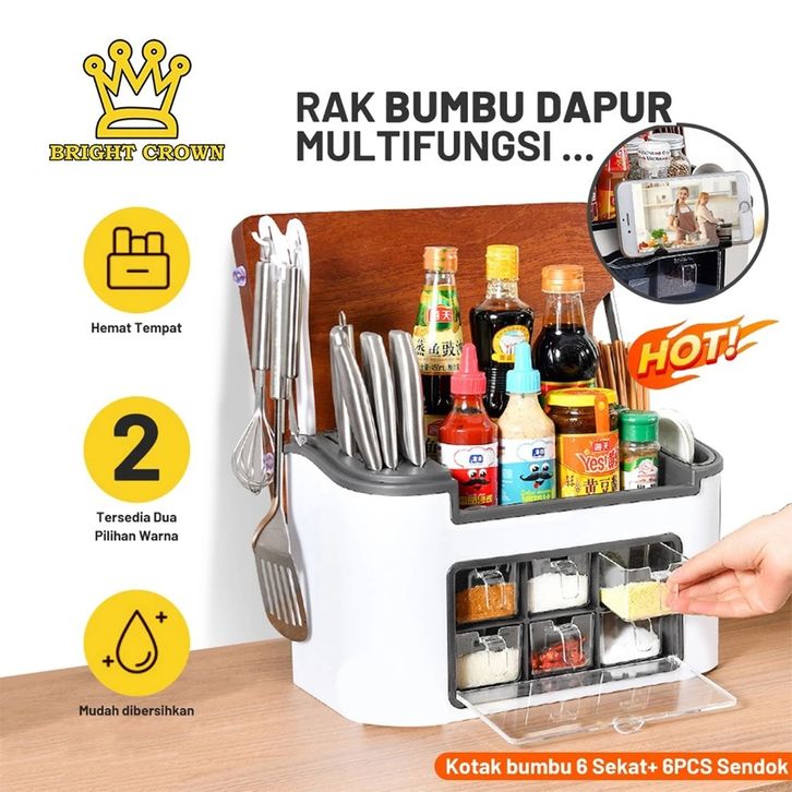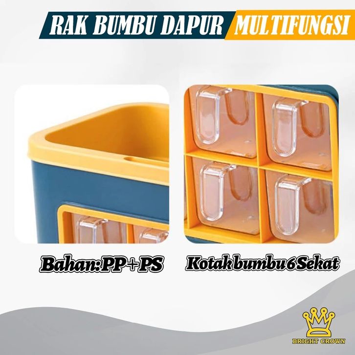Bright Crown Rak Bumbu Dapur All in 1 6Laci FREE 6Pcs Sendok Bumbu + Tempat Pisau Tempat Penyimpanan