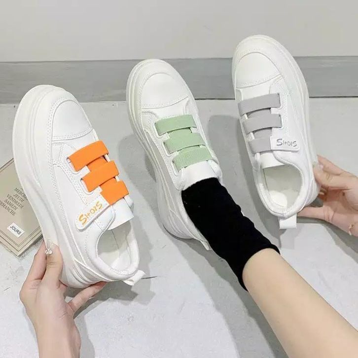 Sepatu Sneakers Wanita Tali Gepeng Strap Rekat Kasual Fashion Sport Shoes Onlinemall Orange Abu Hijau 210 Terbaru