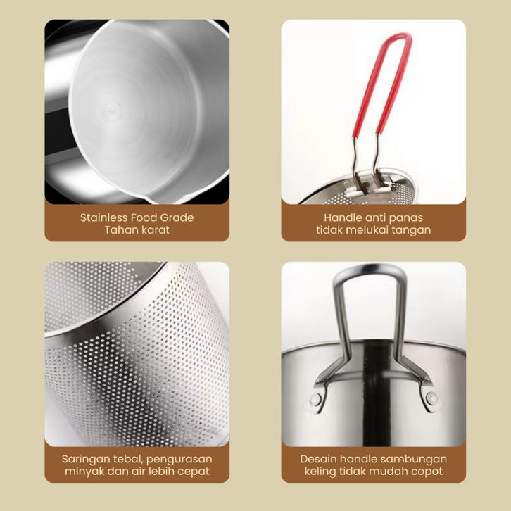 Panci Penggorengan Rebus Stainless Steel Saringan Capitan 4in1 Multi Set