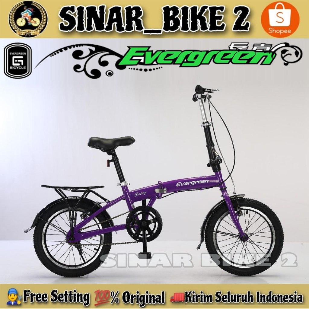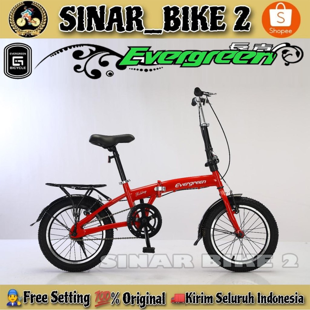 SEPEDA LIPAT DEWASA & ANAK EVERGREEN UKURAN 16 INCH BONCENGAN SINGEL SPEED