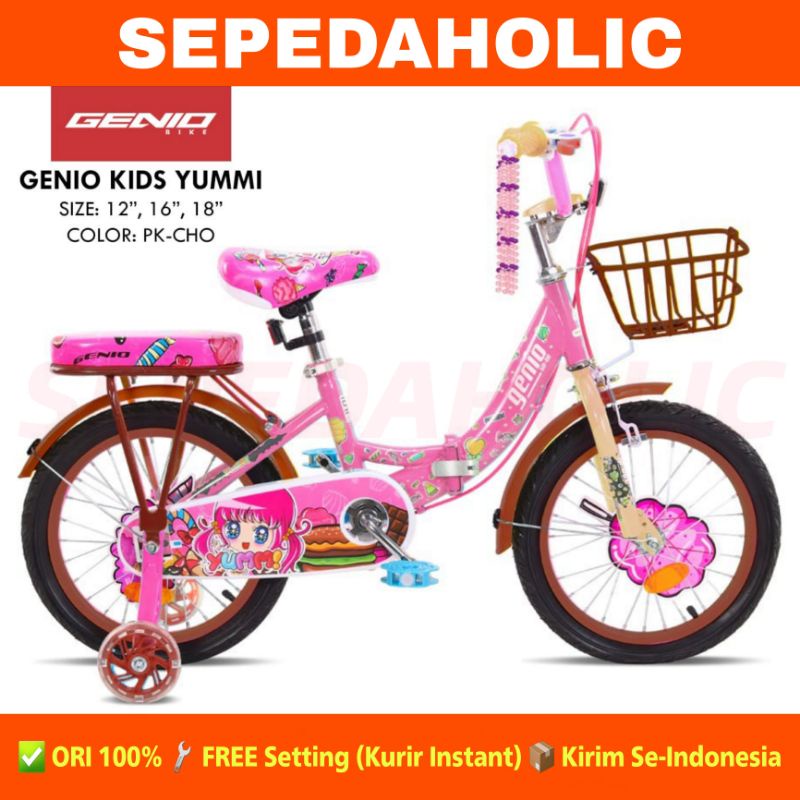 SEPEDA LIPAT ANAK PEREMPUAN GENIO YUMMI KIDS 12 16 18 INCH USIA 2-8 TAHUN