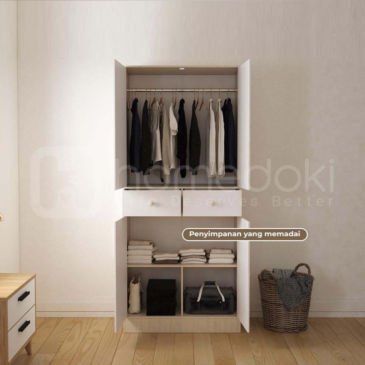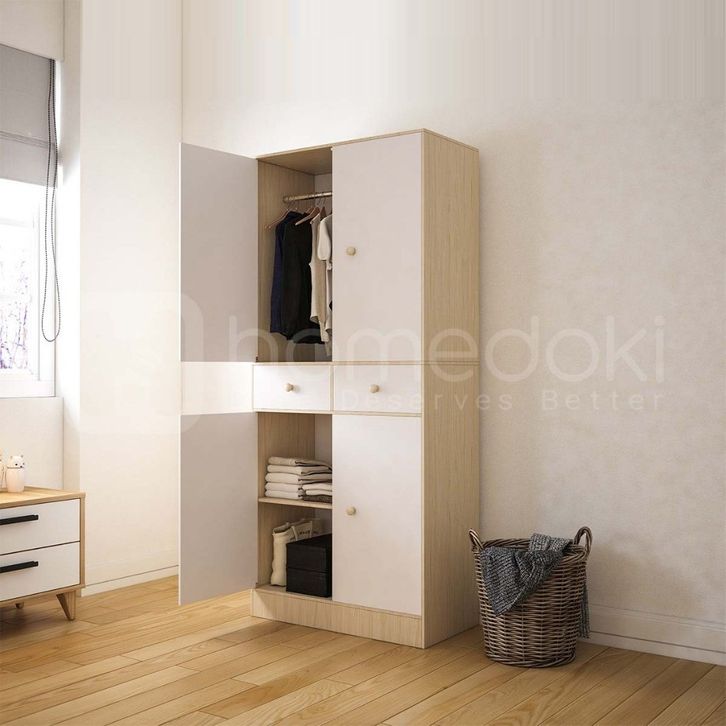 LEMARI PAKAIAN SUSUN KAYU MINIMALIS CUPBOARD ALMARI BAJU ESTETIK FURNITURE WARDROBE TEMPAT PENYIMPANAN SERBAGUNA