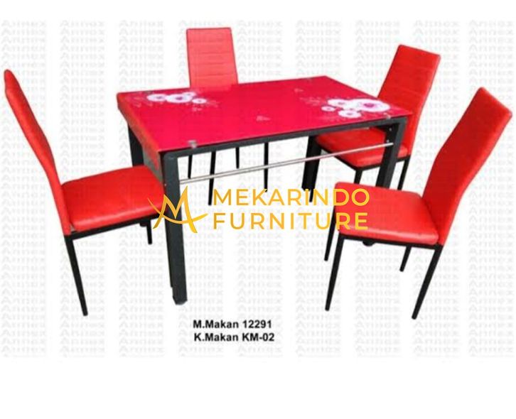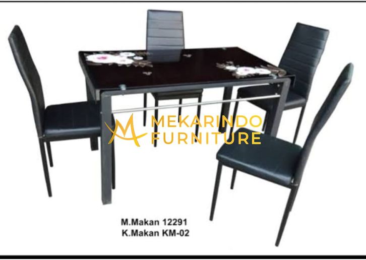 Meja Makan Lengkung Motif Bunga MM 12291 4 Kursi