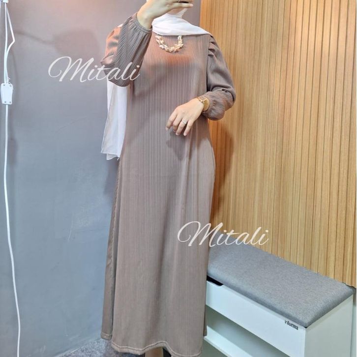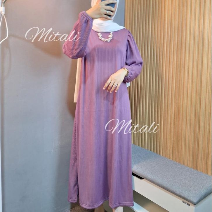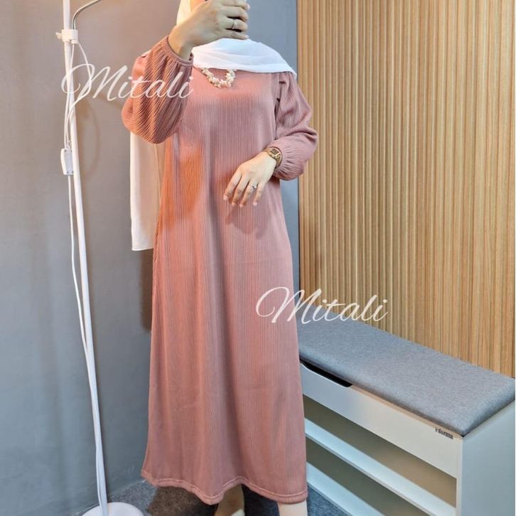 Gamis Wanita Stylish Rempel Tangan Knit Condru Lengan Panjang Motif Polos All Size Jumbo Atasan Wanita Muslimah Kekinian