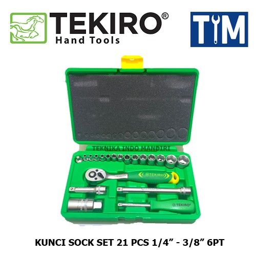 TEKIRO Kunci Sock Set 21 PCS 1/4" - 3/8" 6PT Box Plastik / Kunci Sok Set