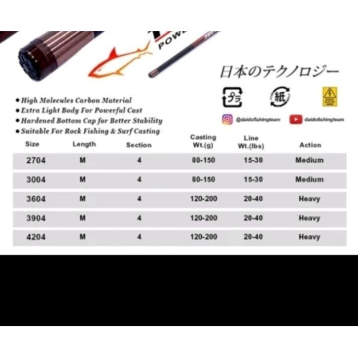 Joran pancing daido tiger shark antena surf pantai 270 300 360 390 420 450 carbon