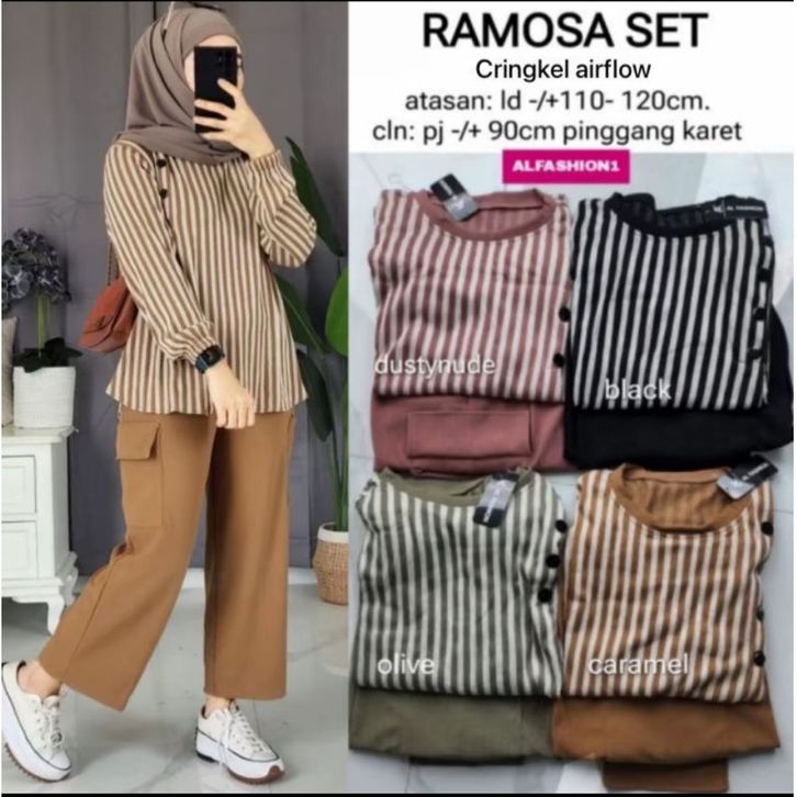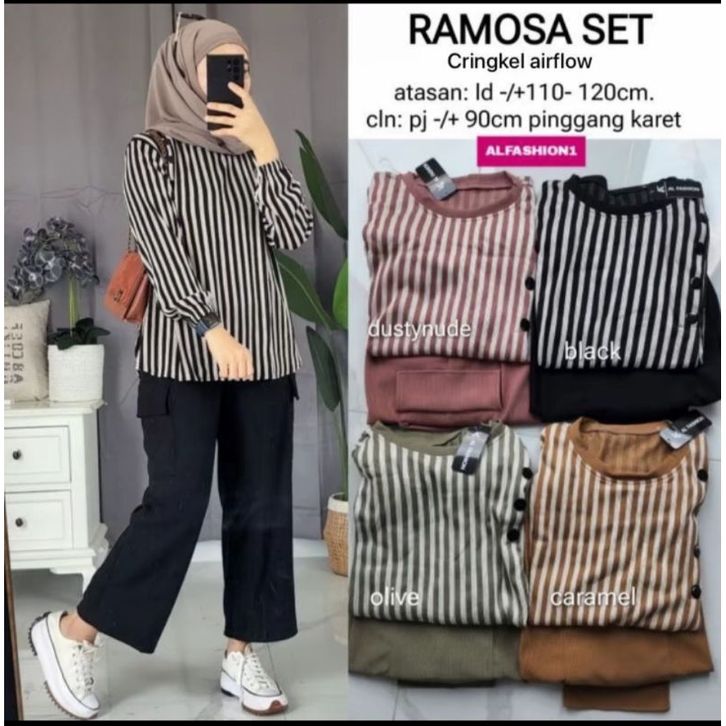 One Set Outfit Wanita Crincle Airflow Ld 110 One Set Ramosa Liris Setelan Wanita Lapis Kringkel Airflow Premium