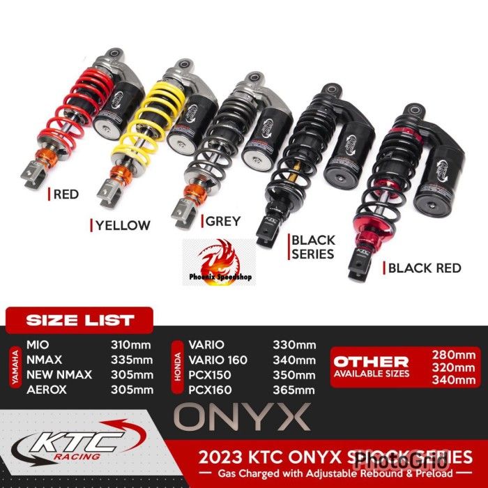 Shockbreaker KTC Onyx 310mm, 330m, 340mm Mio, Beat, Vario125/150/160 - Hitam, 310mm shockbreaker ktc original