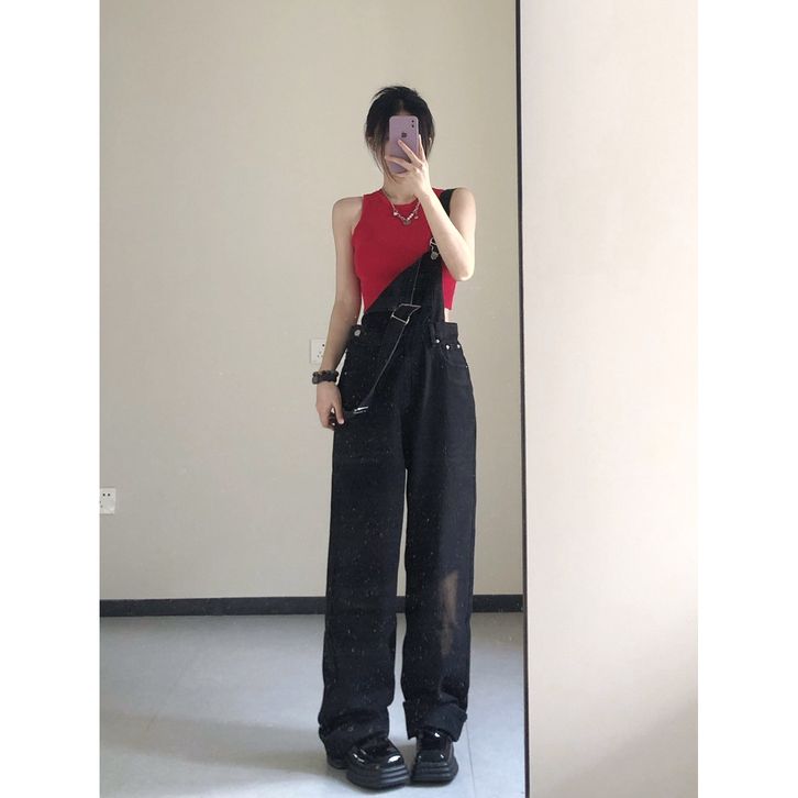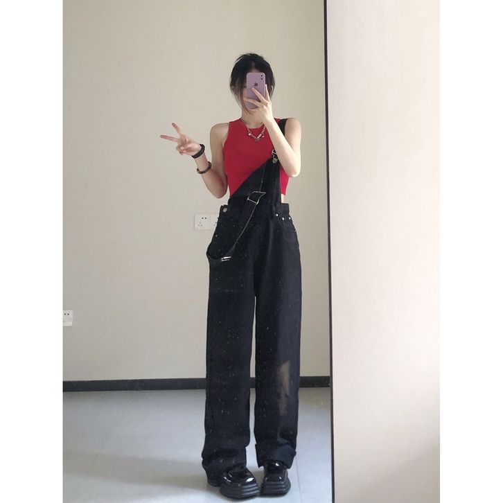 Jumpsuit Jeans kekinian Wanita Korean Style Oversize Vintage Polos Premium Kekinian Kasual Celana Kodok Jeans Wanita