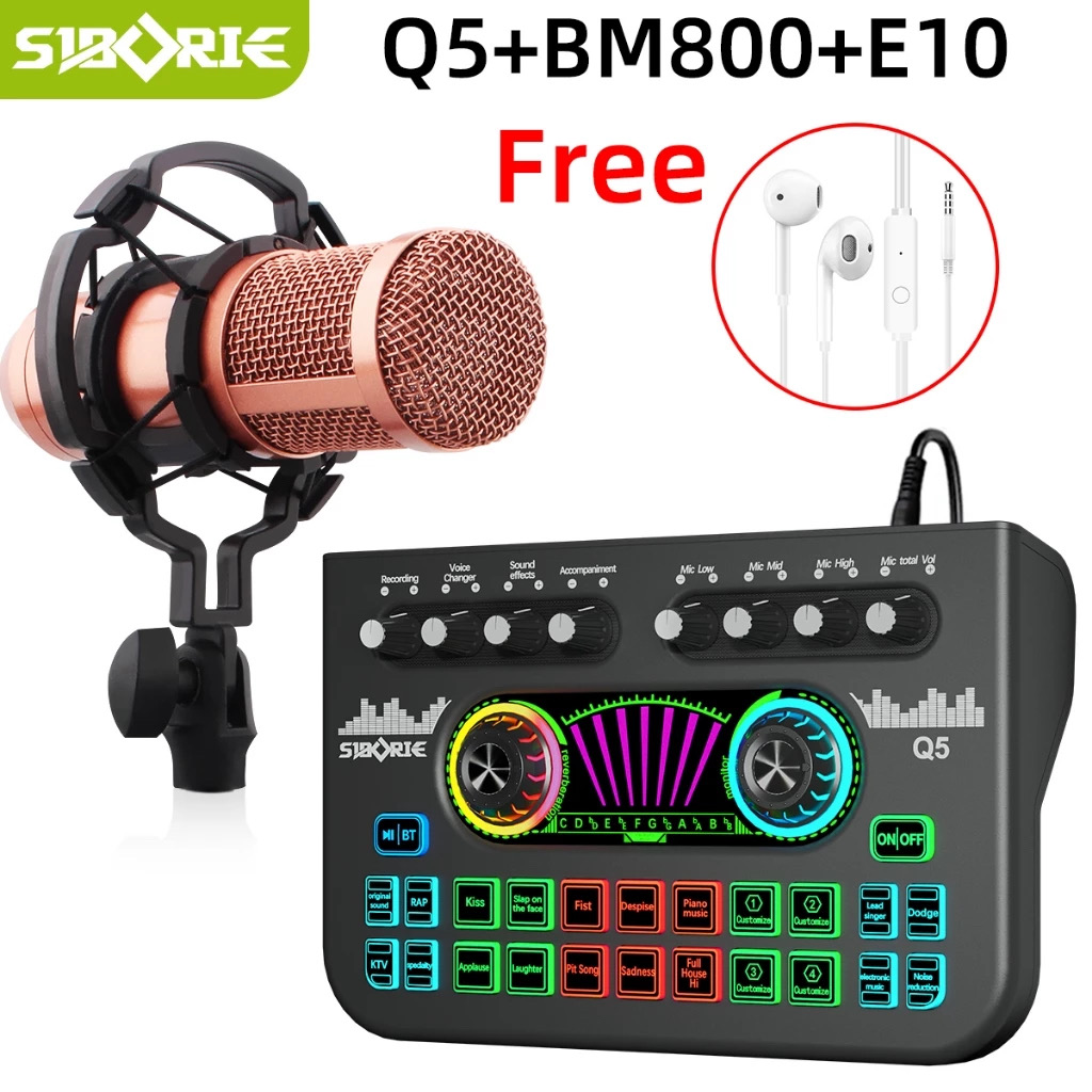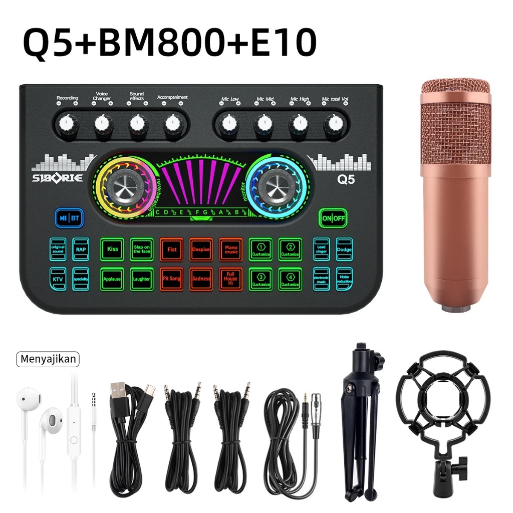 Siborie【Free headphone】Q5+BM800 Rose Gold+E10 paket lengkap soundcard mic headphone full set