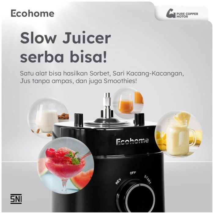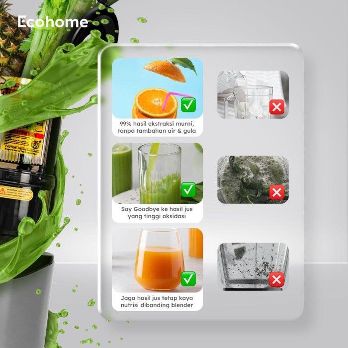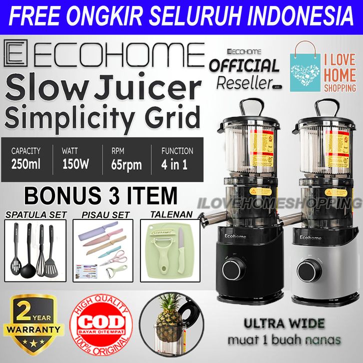 ECOHOME Slow Juicer Simplicity Grid ESJ999SG Pengekstrak Buah Muat 1 Nanas