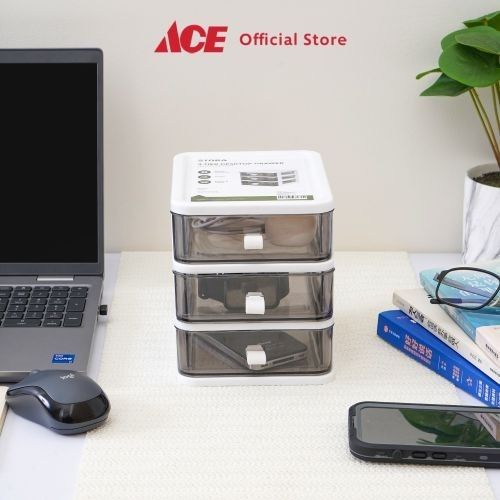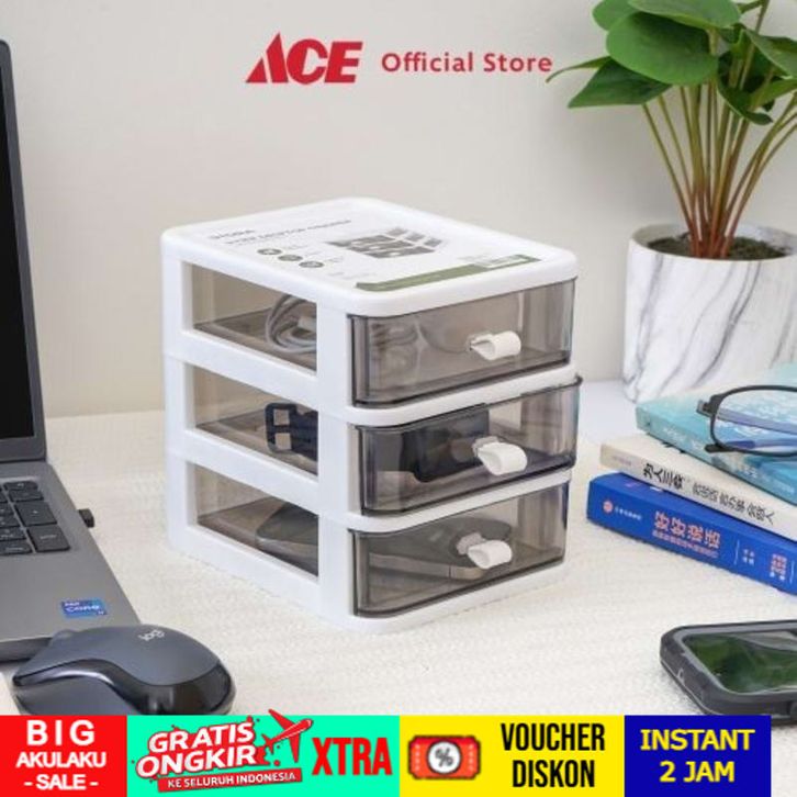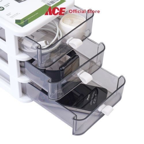 TERLARIS Ace Stora 13.4X17X17 cm Laci Penyimpanan Mini 3 Tingkat Desk Mini Drawer Tempat Organizer Laci Penyimpanan