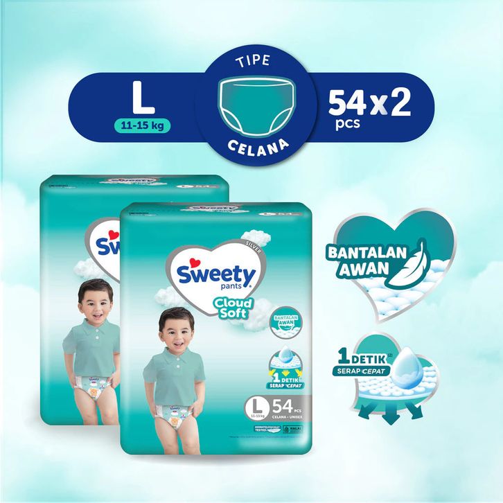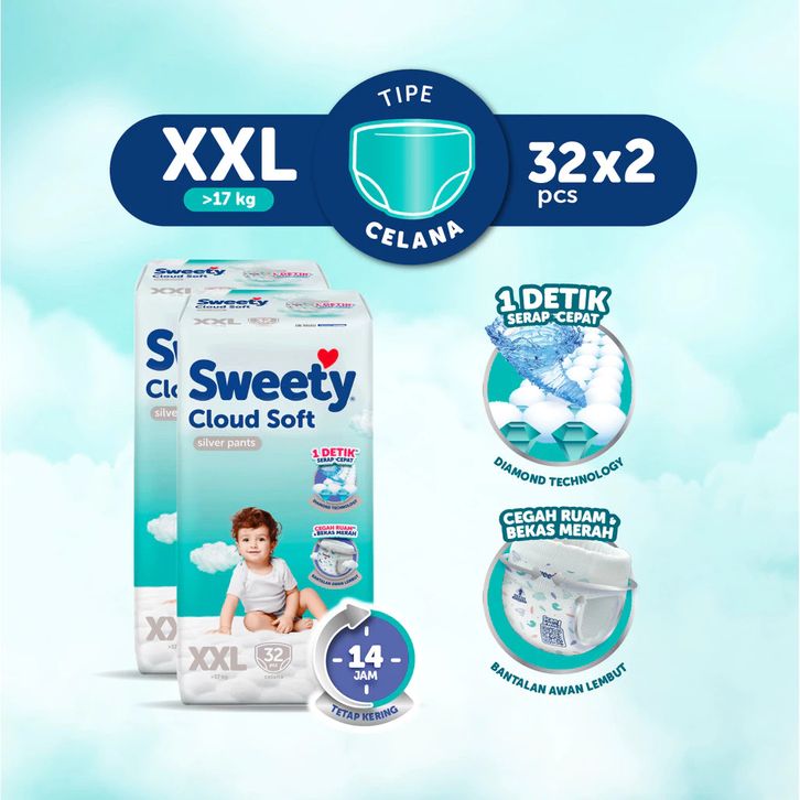 Paket 2 BALL Sweety Silver Pants Cloud Soft S66 M60 L54 XL42 XXL32 x 2 Popok Celana Baby Diapers