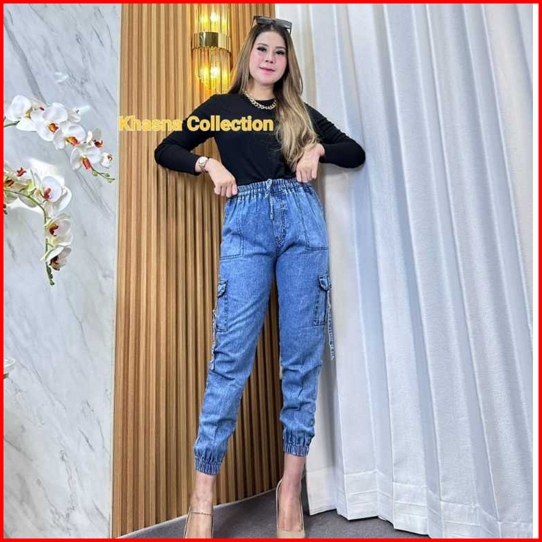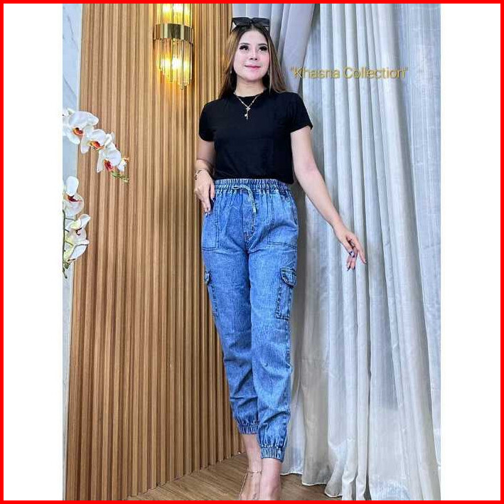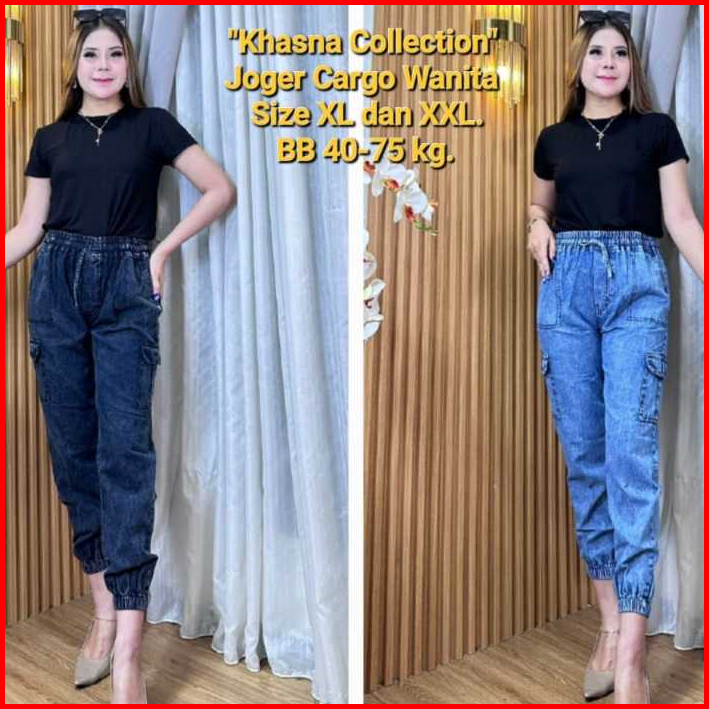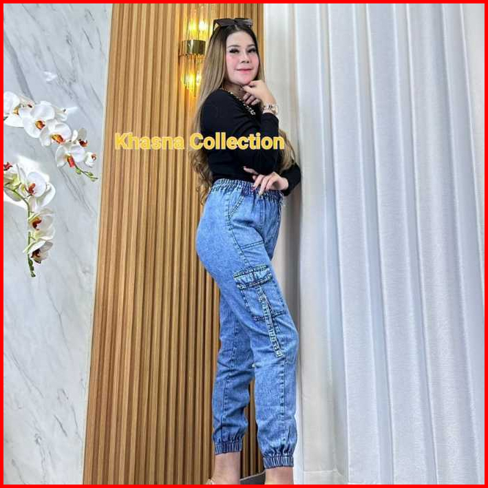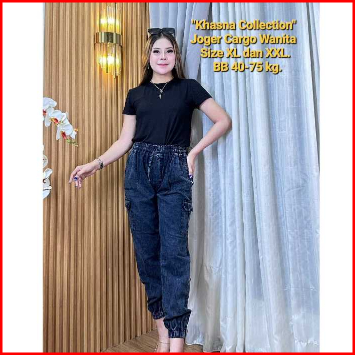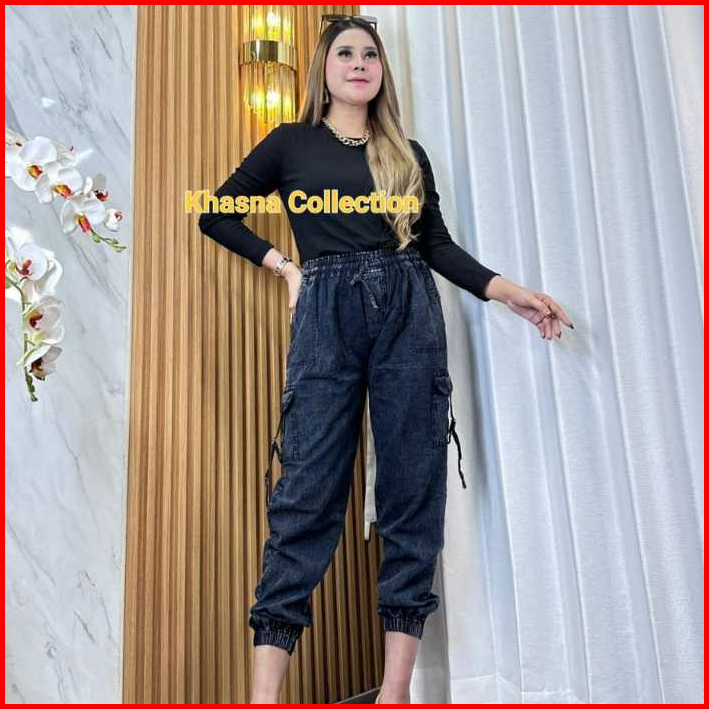 Celana Cargo Jeans Wanita Katun Premium L-xxl