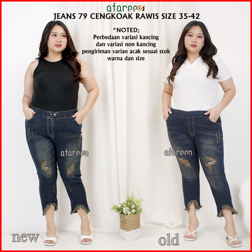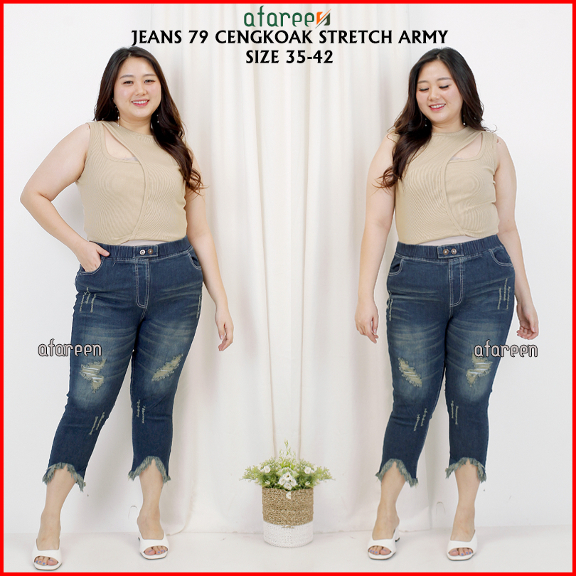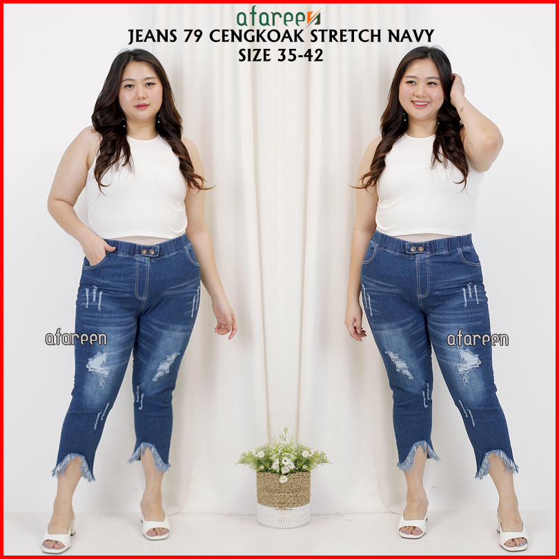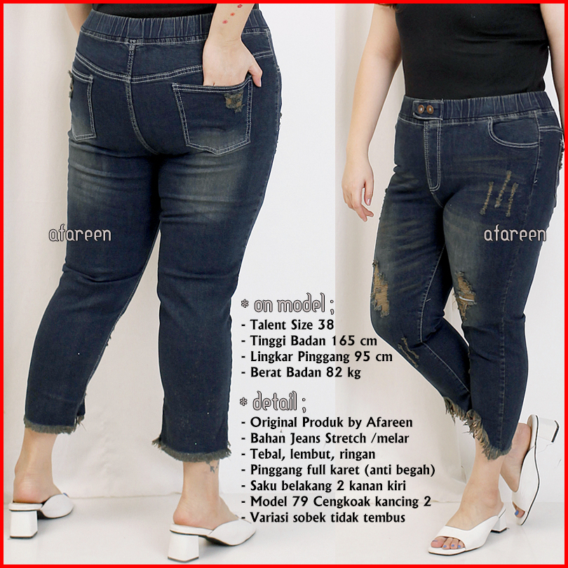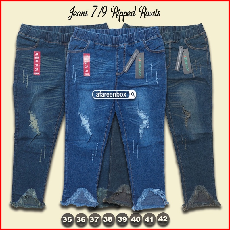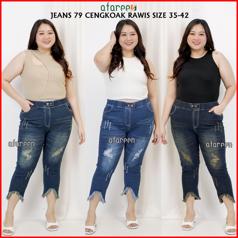 Afareen - Jeans 79 Jumbo Celana Jeans Wanita 7 9 Ripped Rawis Jeans Jumbo Pinggang Karet Melar 35-42