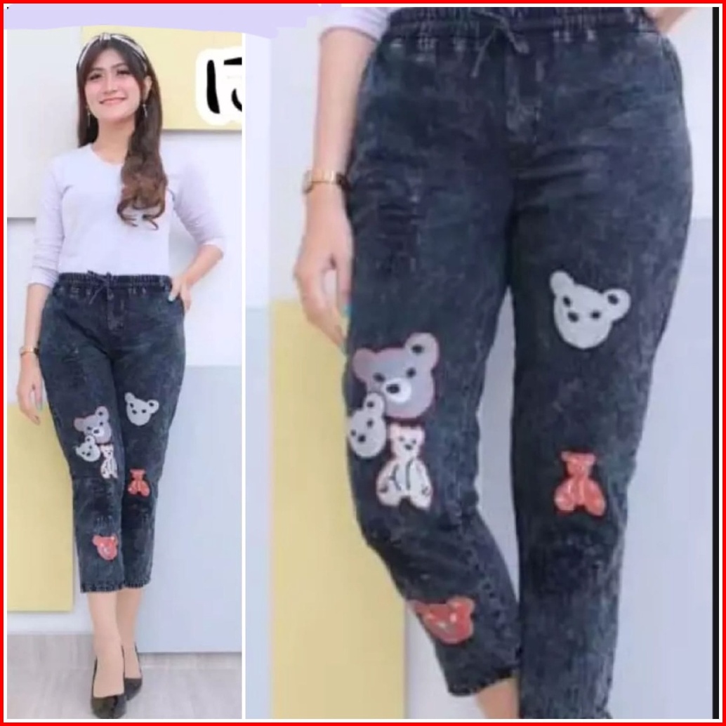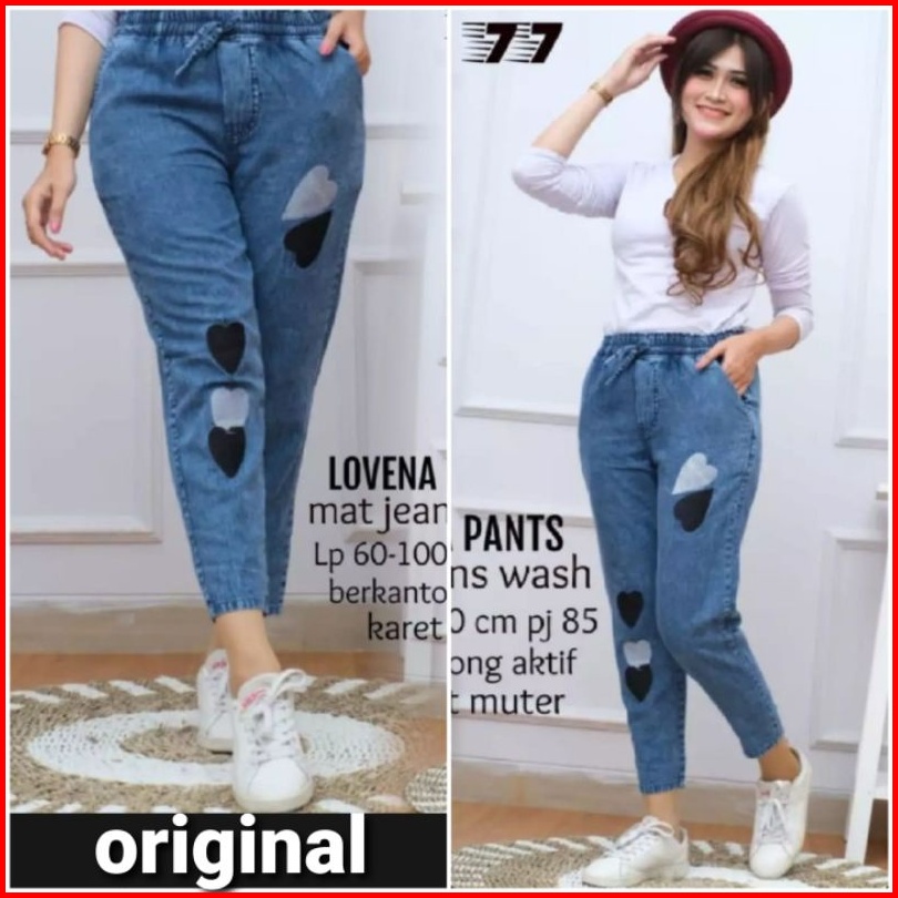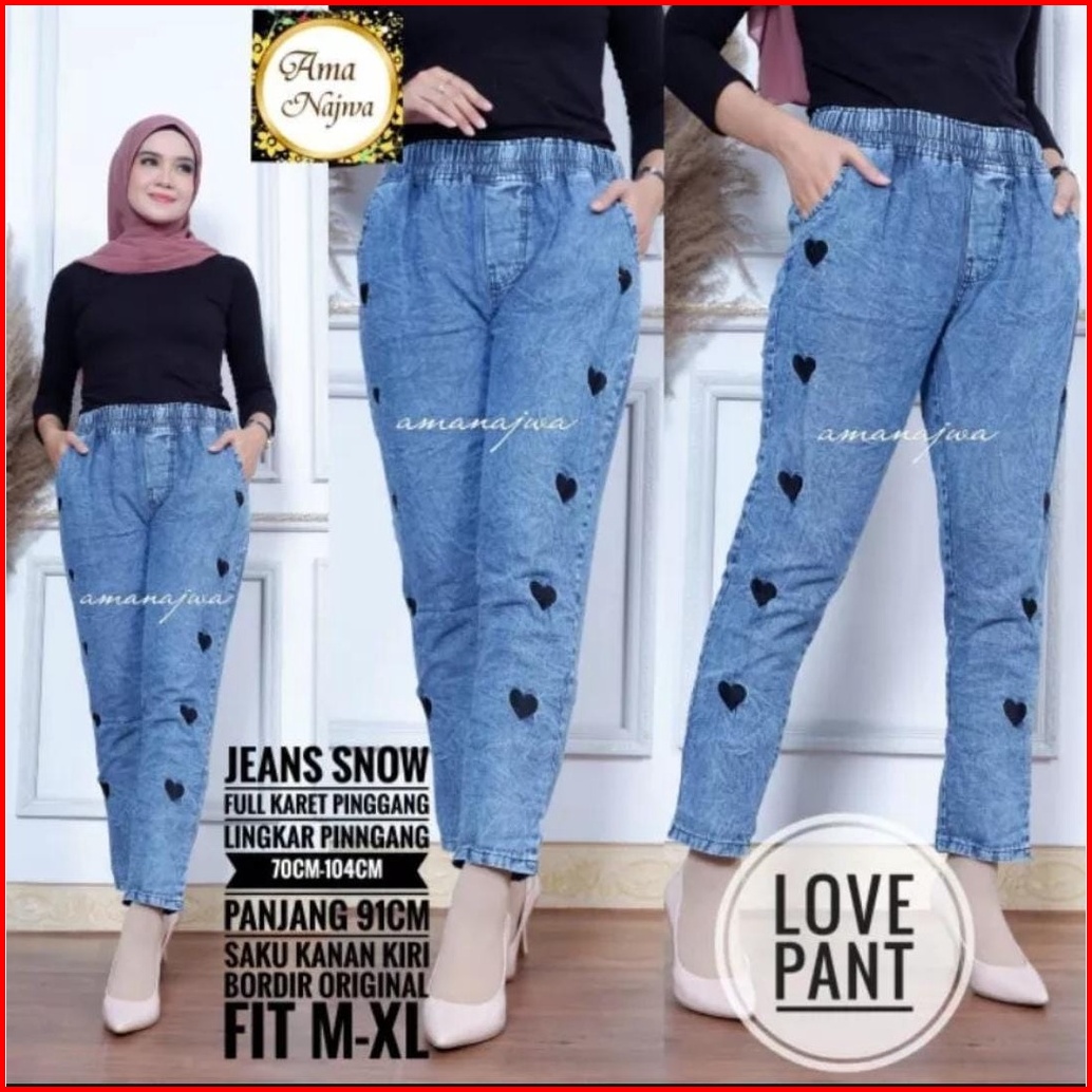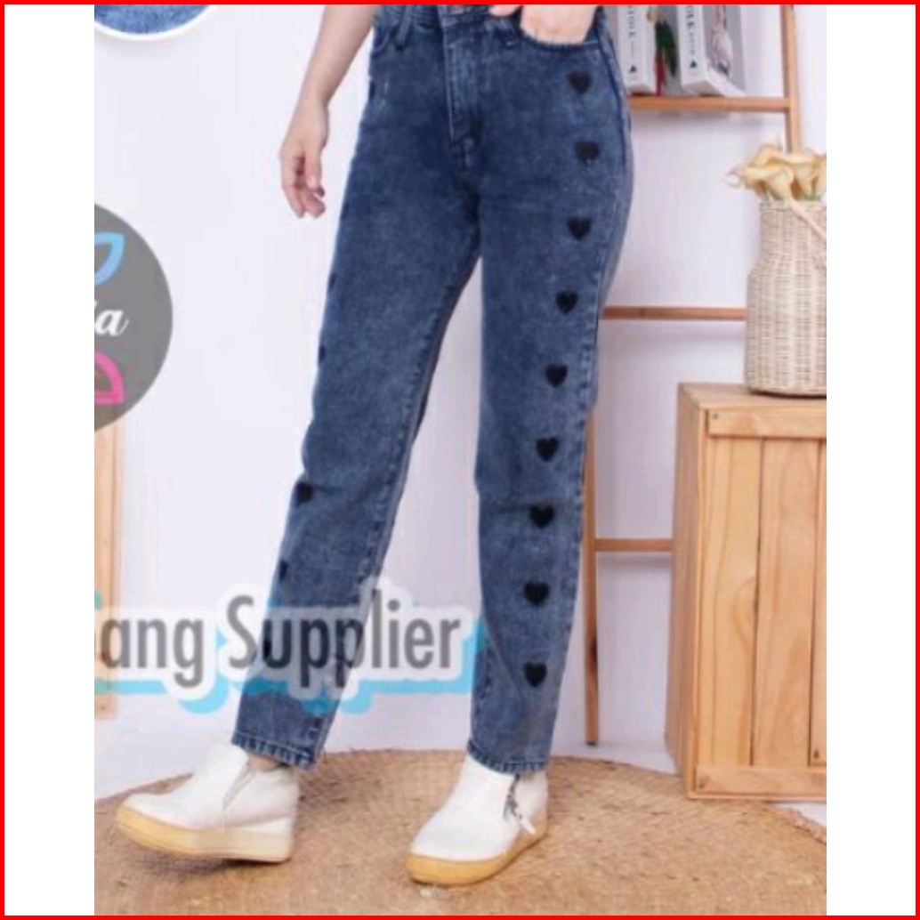 Celana Jeans Motif Love Bordir Jumbo Adem Nyaman