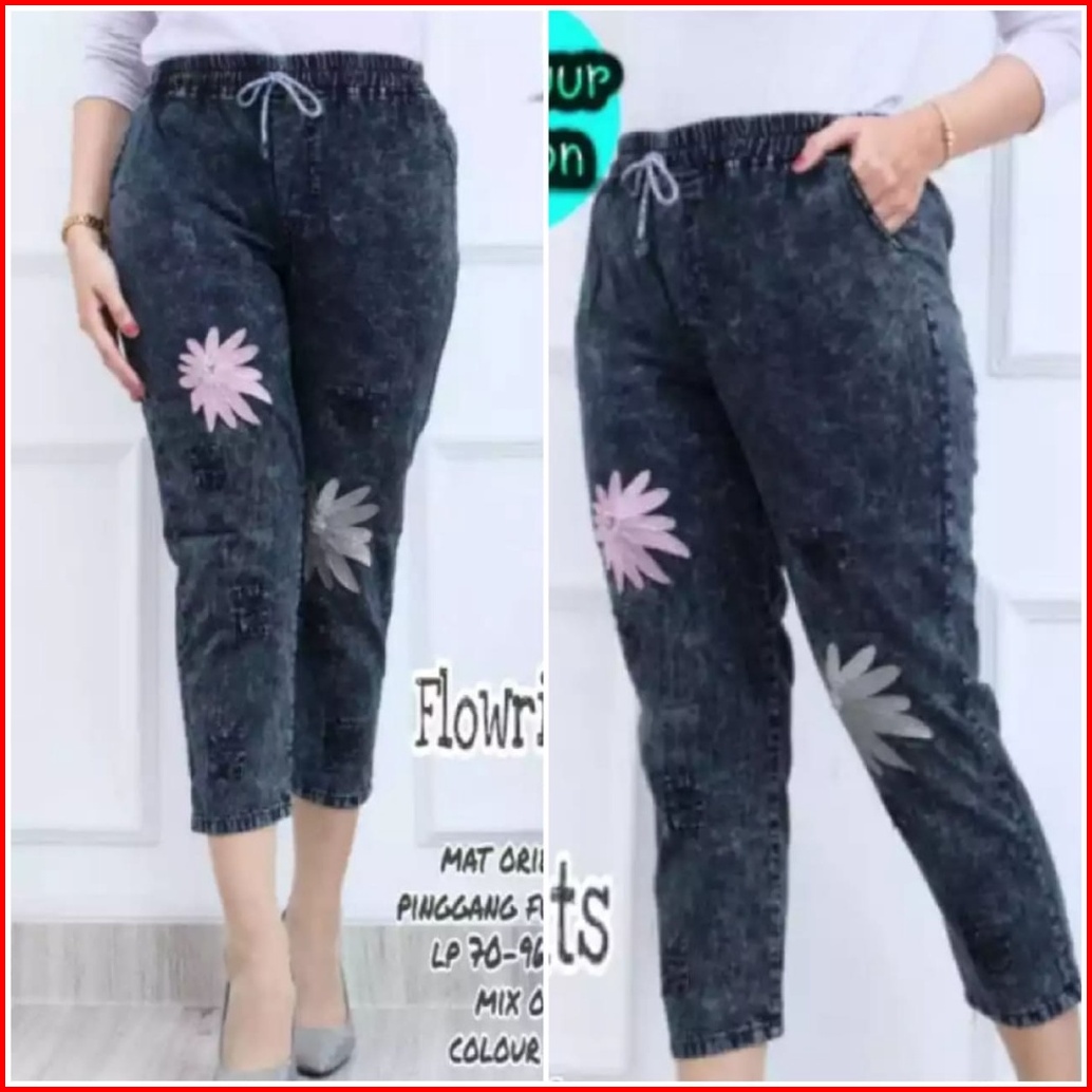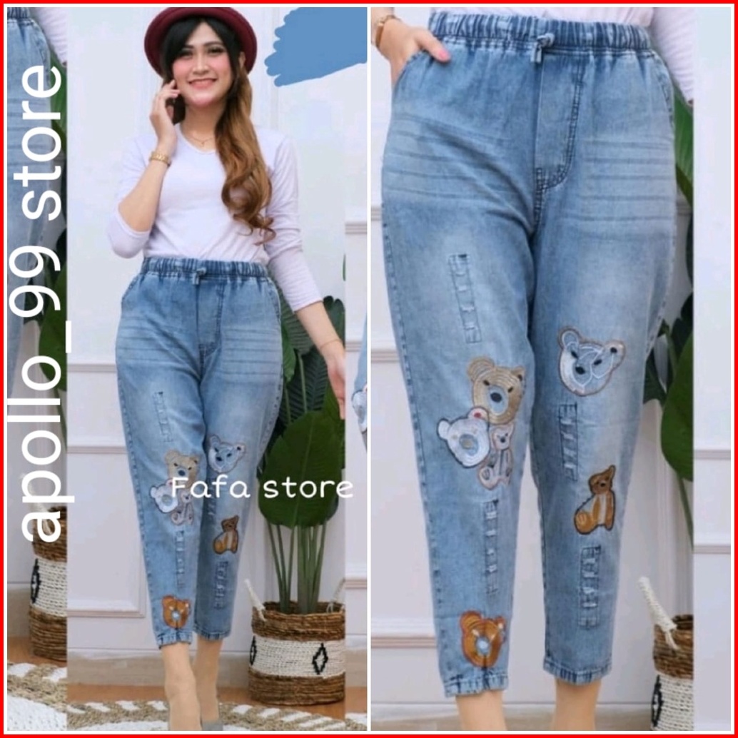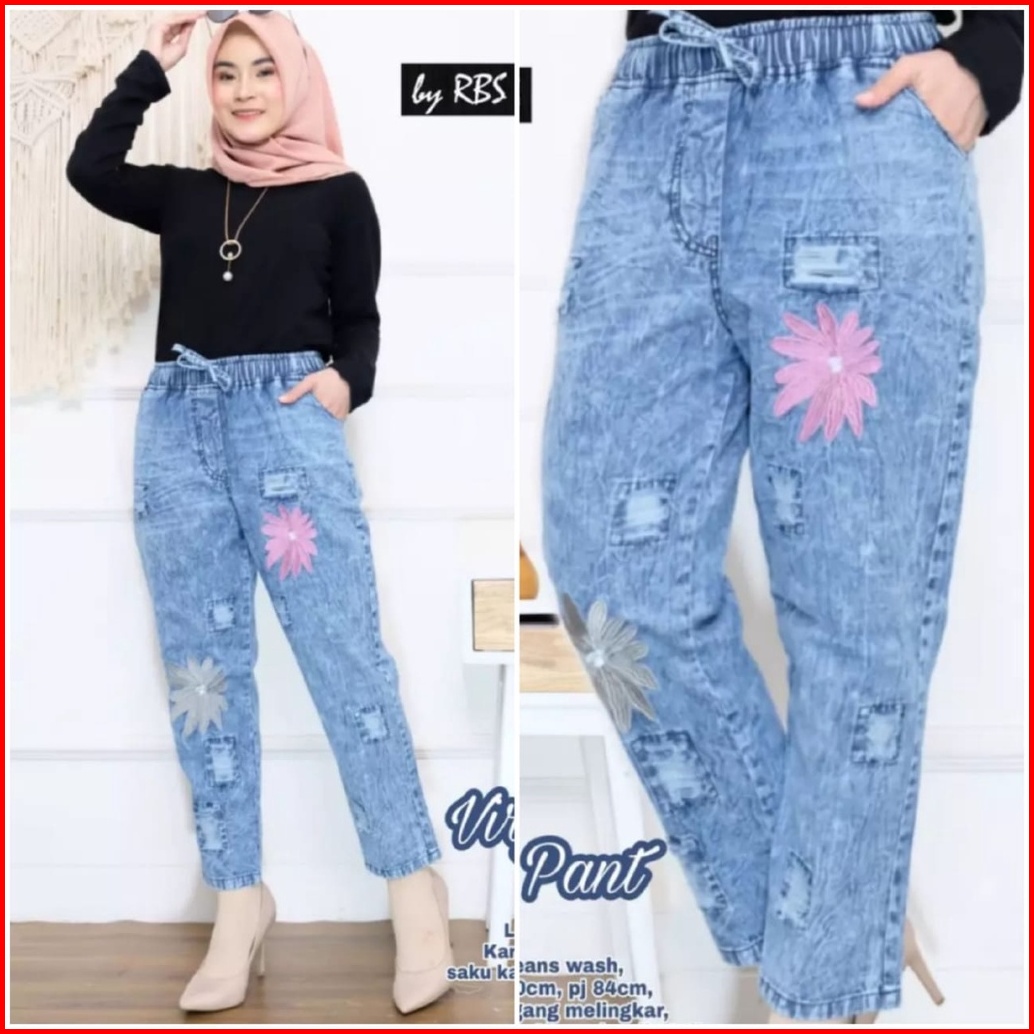 Celana Jeans Motif Love Bordir Jumbo Adem Nyaman