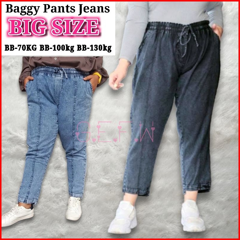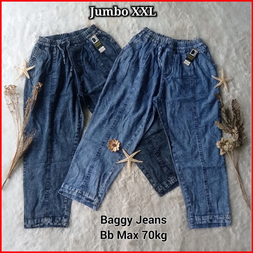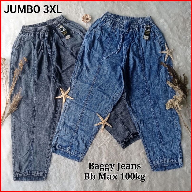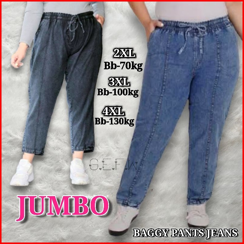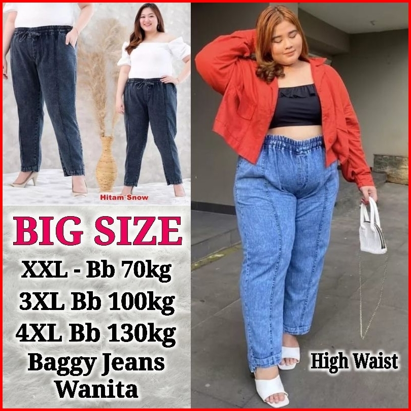Celana Panjang Baggy Pants Jeans Wanita Big Size Xxl 3xl 4xl Bb 70kg Bb 100kg Bb 130kg Baggy Jeans Wanita High Waist Sup