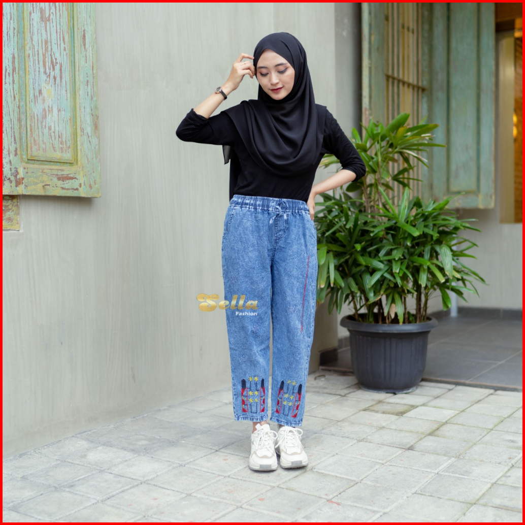 Sella Beggy Softjeans Celana Wanita Bordir Orinika Korean Style